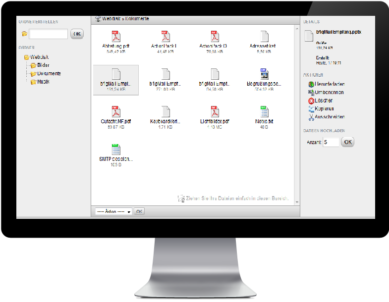 Ob Digitalfotos, MP3s oder Dokumente 24-mail bietet Ihnen mit bis zu 100 GB Dateispeicher ausreichend Platz für die Verwaltung Ihrer Dateien.